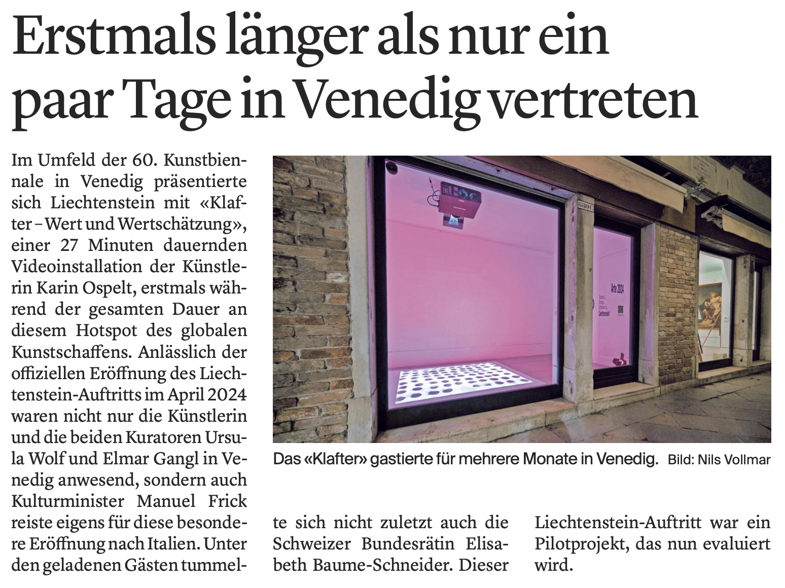 Die Liechtensteiner Wochenzeitung Liewo hat die kommende Ausstellung in Venedig auch erwähnt.